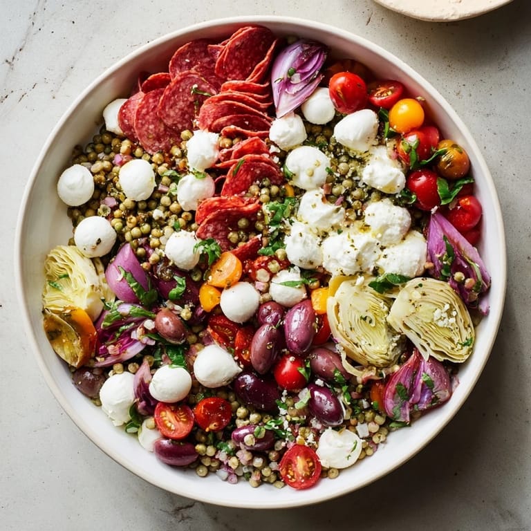 Pin It I threw this salad together one Sunday afternoon when company was on the way and I had nothing planned. The fridge was full of leftover antipasto tray ingredients from the night before, half a jar of artichokes, and some mozzarella pearls I'd bought on impulse. What started as a panicked improvisation turned into the most-requested dish at every gathering since. It's become my go-to when I want something that looks generous and tastes like I spent hours, but really only took minutes between sips of coffee.