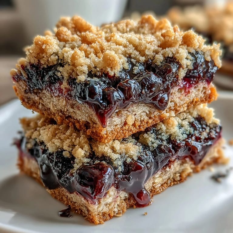 Pin It My kitchen smelled like a farmer's market when I first assembled these blueberry oat bars—fresh berries and warm butter creating this gentle, wholesome perfume that somehow felt like breakfast and comfort all at once. I'd been standing at the grocery store, holding a pint of blueberries still cool from the refrigerator case, thinking there had to be a way to capture that moment in something portable, something I could wrap up and hand to people without apologizing for it being simple. These bars arrived almost accidentally, born from wanting nutrition that didn't taste like punishment, texture that stayed soft even after a few days tucked in a bag.