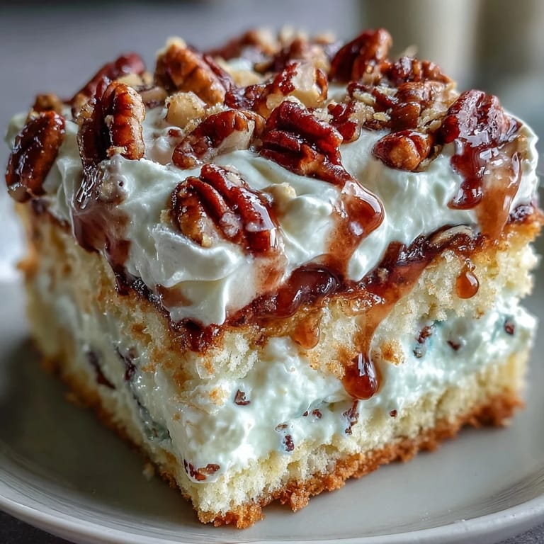Pin It My neighbor brought over a slice wrapped in foil one Sunday afternoon, still cold from her fridge. I took one bite and the cake practically dissolved on my tongue, soaked through with sweetness and topped with candied pecans that snapped between my teeth. She laughed at my wide eyes and said she'd teach me, but only if I promised not to skip the overnight soak. I've been making it ever since, and every time I poke those holes into the warm cake, I think of her kitchen and that first taste.
