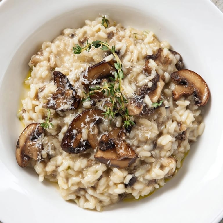 Pin It A creamy, aromatic risotto infused with earthy mushrooms, fresh thyme, and a subtle cedarwood essence—perfect for rustic, woodland-inspired comfort dining.