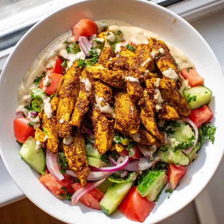 Pin It I first tried shawarma from a street cart in downtown Toronto on a cold October night, and the warmth of those spices stayed with me for weeks. When I finally recreated it at home, I skipped the pita and piled everything over a bright, crunchy salad instead. The tahini pooled into the tomatoes, the chicken stayed juicy, and I realized I'd never go back to the wrapped version. It felt lighter, fresher, and somehow more satisfying. That's when this bowl became my go-to whenever I wanted something vibrant without the heaviness.