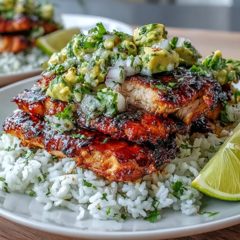 - Mound a bed of fragrant rice on each plate, arrange sliced chicken across the top, and spoon the avocado mixture generously over everything. Let the warm ingredients slightly soften the cool avocado.