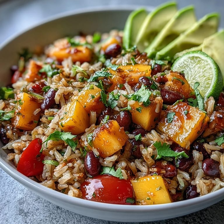 There's a reason tropical fruits and black beans show up together in Caribbean and Latin American cooking—they genuinely complement each other in a way that feels inevitable once you taste it. The mango's sweetness and soft texture contrasts with the earthiness of the beans, while the lime dressing ties everything together with bright acidity that cuts through the richness of the avocado. Brown rice acts as a humble anchor that lets all the colorful toppings shine without competing for attention.