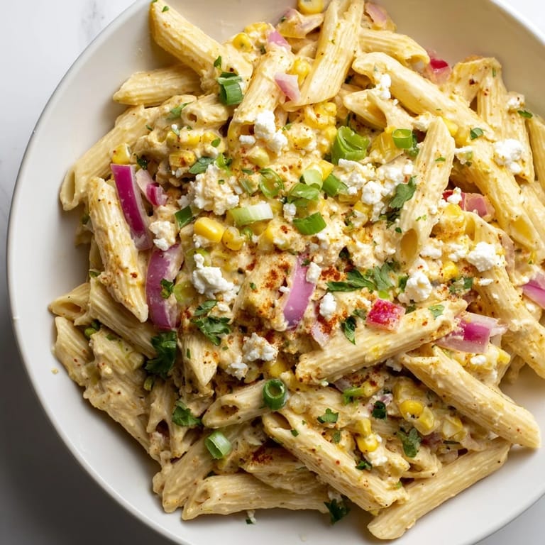 If you've never had elote from a street vendor in Mexico, it's a revelation—fresh corn on a stick, slathered with a lime and mayo mixture, rolled in cotija cheese, and dusted with chili powder. This pasta is basically that same flavor dream without needing to eat with your hands or worry about the toppings rolling off. It's comfort food dressed up as a pasta salad.