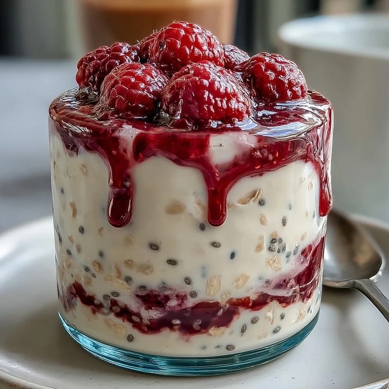 Pin It There's something almost magical about waking up to breakfast already waiting for you, especially when you're rushing out the door on a Tuesday morning. I discovered overnight oats by accident when I had leftover Greek yogurt and a carton of raspberries that needed rescuing, so I threw them together in a jar before bed out of pure laziness. What emerged the next morning was creamy, naturally sweet, and so effortless that I've never looked back. The chia seeds make it feel intentional, like you're actually taking care of yourself, even though you're basically just stirring milk into oats the night before.