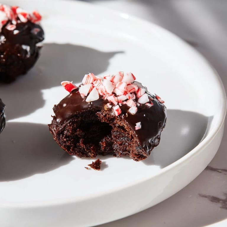 Pin It Rich, fudgy brownie bites infused with espresso and cool peppermint, topped with a silky chocolate glaze—perfect for festive gatherings or as a decadent treat.