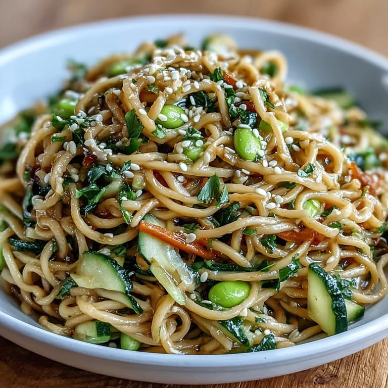 Pin It There's something about a bowl of cold sesame noodles that stopped me in my tracks one summer afternoon when my neighbor brought one over, saying she'd made too much. The way the sesame oil glistened under the kitchen light, how the ginger hit my nose before I even tasted it—I was hooked. Now it's become my go-to when the weather gets warm and I want something that feels both nourishing and a little bit fancy without the fuss.