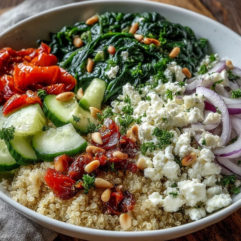Pin It There's something about a grain bowl that feels like putting together a puzzle—each component arrives at the table with its own personality, waiting to be discovered with every forkful. I stumbled onto this particular combination on a random Tuesday when my fridge was overflowing with vegetables and I had leftover quinoa staring me down. The spinach wilted into something unexpectedly silky, the feta crumbled just right, and suddenly what I thought would be a quiet lunch turned into something I found myself making three times that week.