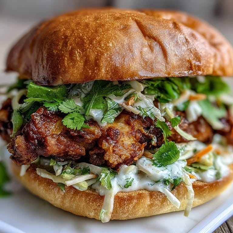 Pin It The first time I bit into this sandwich, I was standing in my friend's tiny apartment kitchen in Bangkok. She'd spent the afternoon marinating chicken in buttermilk and red curry paste, something I'd never thought to combine. When she pulled that golden chicken from the oil, the whole neighborhood seemed to stop and smell what was happening.