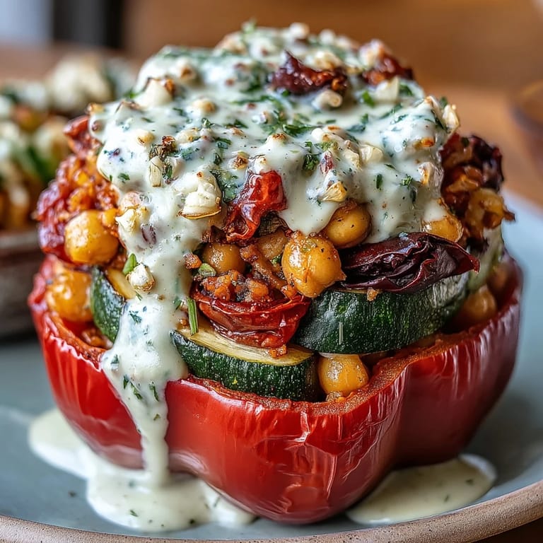 Pin It There's something about pulling a baking dish of stuffed peppers from the oven that makes the whole kitchen smell like a sun-soaked Mediterranean afternoon. I discovered this recipe during one of those evenings when I had a fridge full of colorful bell peppers and felt like creating something that would make my guests pause mid-conversation to ask for seconds. The combination of herbed chickpeas, bright lemon tahini, and those jewel-toned peppers felt like both comfort and celebration at once.